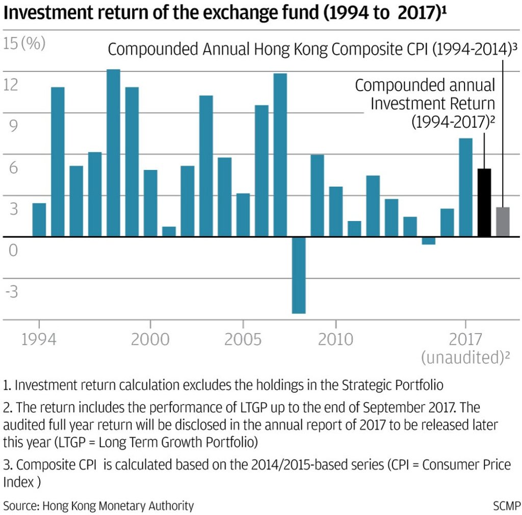 The fund made HK$252 billion last year, almost four times the HK$68.1 billion gains in 2016