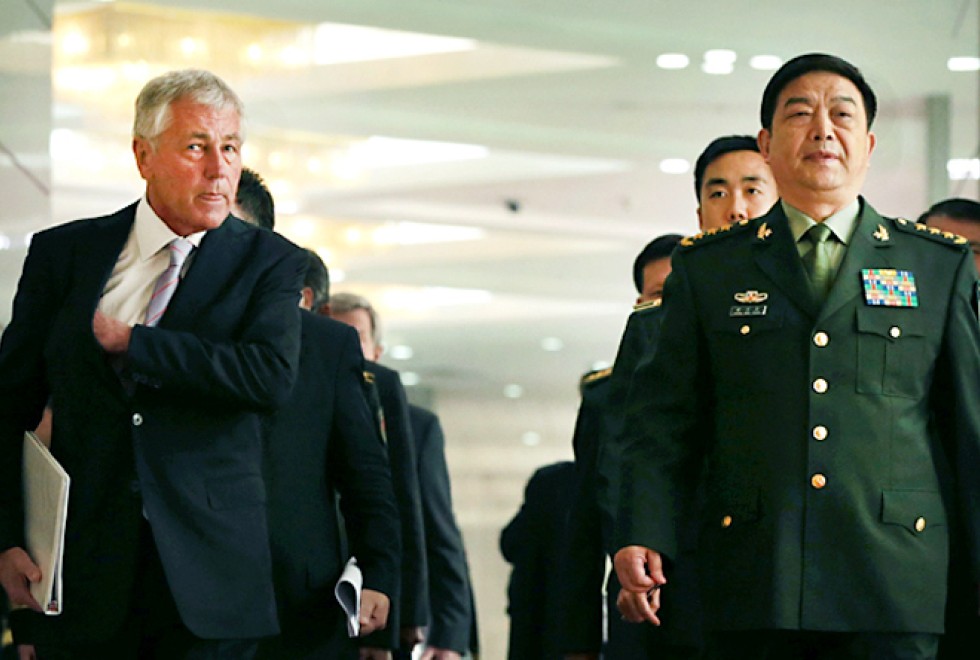 Hagel told Chang at the press conference that Washington had a treaty obligation to protect Japan in any dispute with China, and denounced Beijing's declaration of an air defence zone over the East China Sea in November.