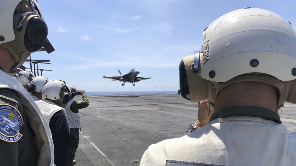 The US Navy flew a small group of Philippine generals, officials and journalists to the USS Theodore Roosevelt, where fighter jets - from its roster of 65 aircraft, also including helicopters and spy planes - landed and took off from the nuclear-powered ship by catapult with thunderous blasts.