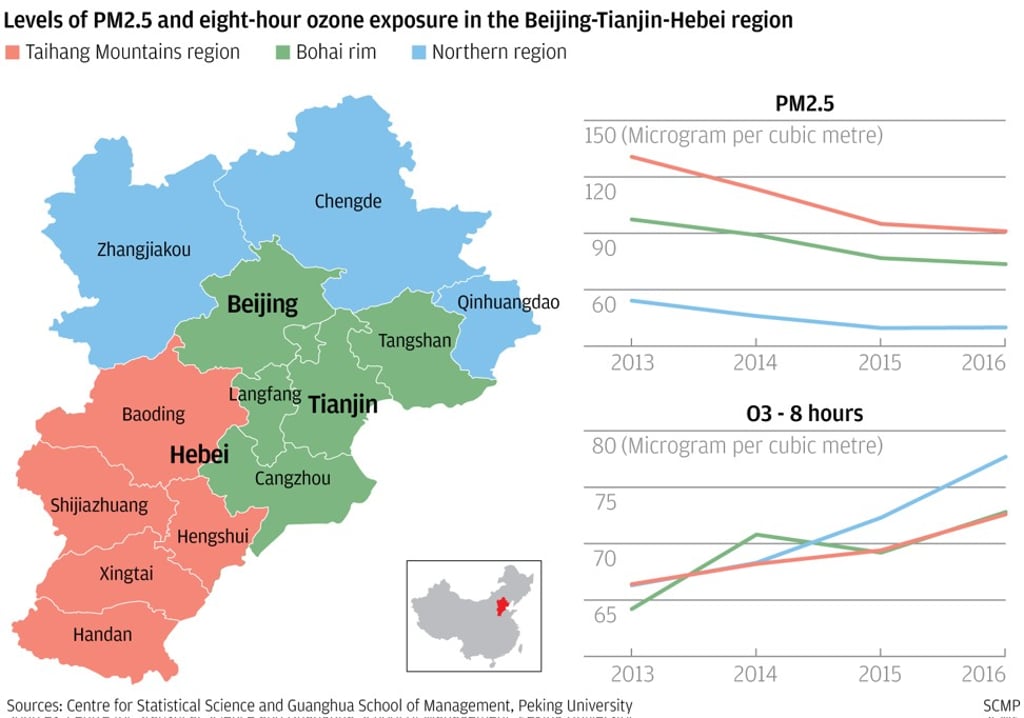 Levels of the pollutant went up by 13.3 per cent from 2013 to 2016 in the 13 cities of the Beijing-Tianjin-Hebei area – an industrialised region with 130 million residents – according to the Peking University study.