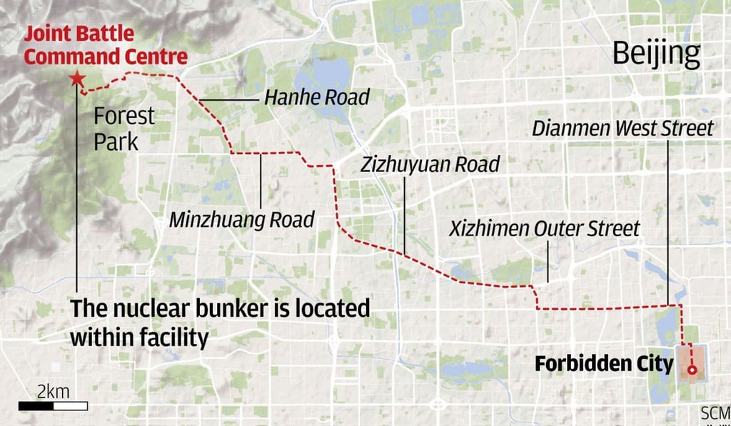 The bunker is part of the Central Military Commission’s Joint Battle Command Centre, which was revealed to the world in 2016 when state media reported that President Xi Jinping, dressed in fatigues, had visited the facility.