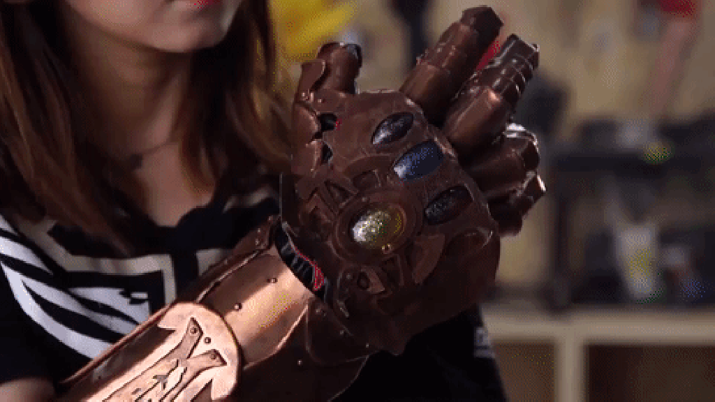 Their version of the Infinity Gauntlet is made of bronze and wired with small lights inside. The gems light up with the push of a button.