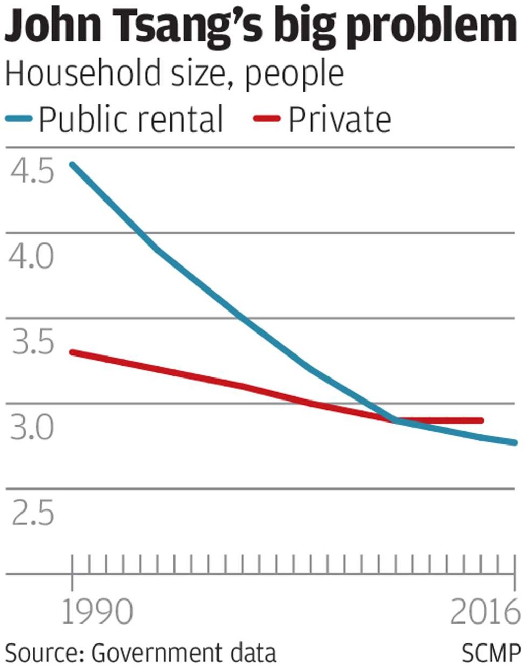 This is the story the chart tells me. The figures come from the Housing Authority itself and they show you that the average household size in public rental housing has fallen from 4.4 people in 1990 to less than 2.8 people at present.