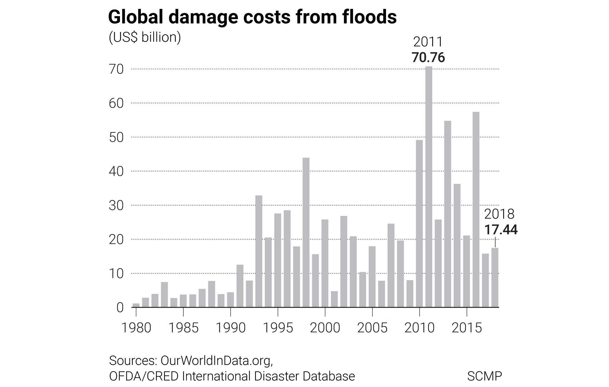 For instance, between 1980 and 2019, flooding accounted for about 40 per cent of all natural catastrophes where losses were incurred globally, but only 12 per cent of the more than US$1 trillion in losses were insured, data from German reinsurer Munich Re shows.