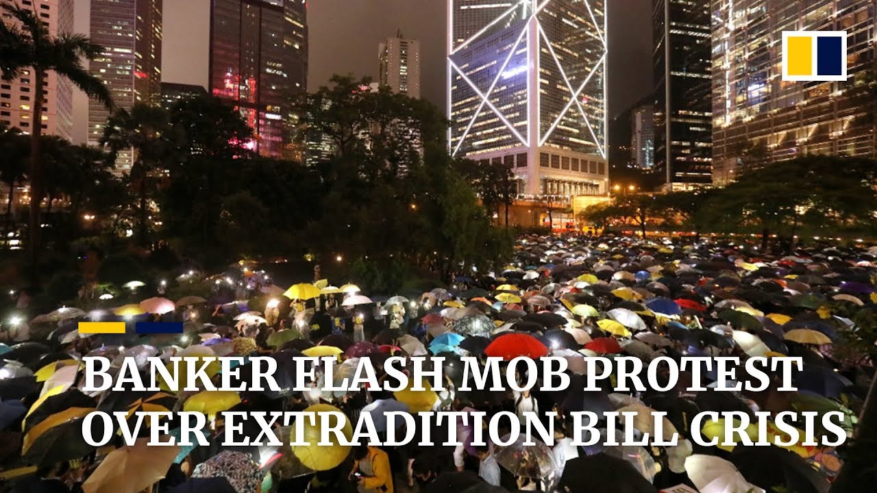 Bankers stage flash mob protest against Hong Kong government’s handling of extradition bill crisis