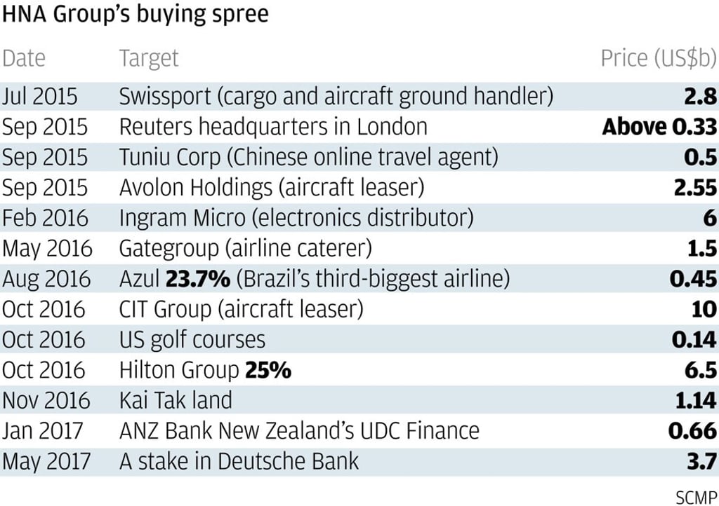 HNA, bought Swissport for 2.73 billion Swiss francs (US$3 billion/) in 2015 amid a debt-funded global acquisition spree.