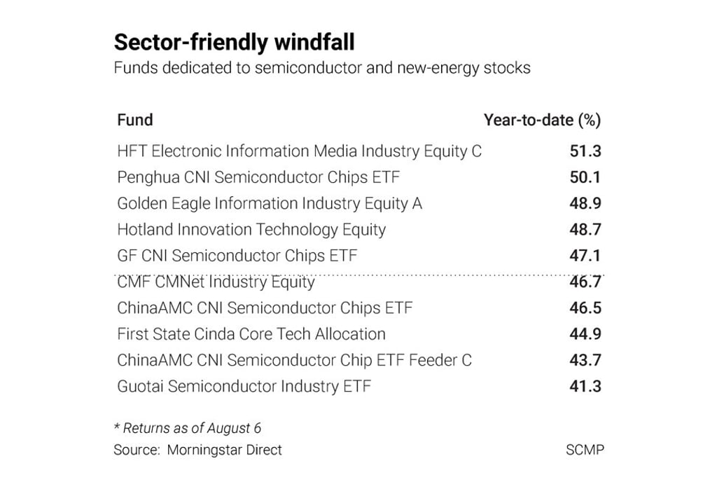 - Top 10 onshore funds generated 41 to 51 per cent gains this year through August 6 by loading up on chip makers and new-energy companies