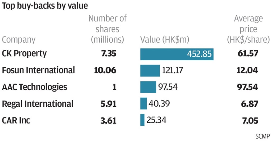 The number of companies and trades on the buying side were up from the previous week’s 47 firms and 206 purchases. The buy value, however, was down from the previous week’s acquisitions worth HK$217 million, while sales were up from the previous week’s 15 companies, 71 disposals and HK$107 million.