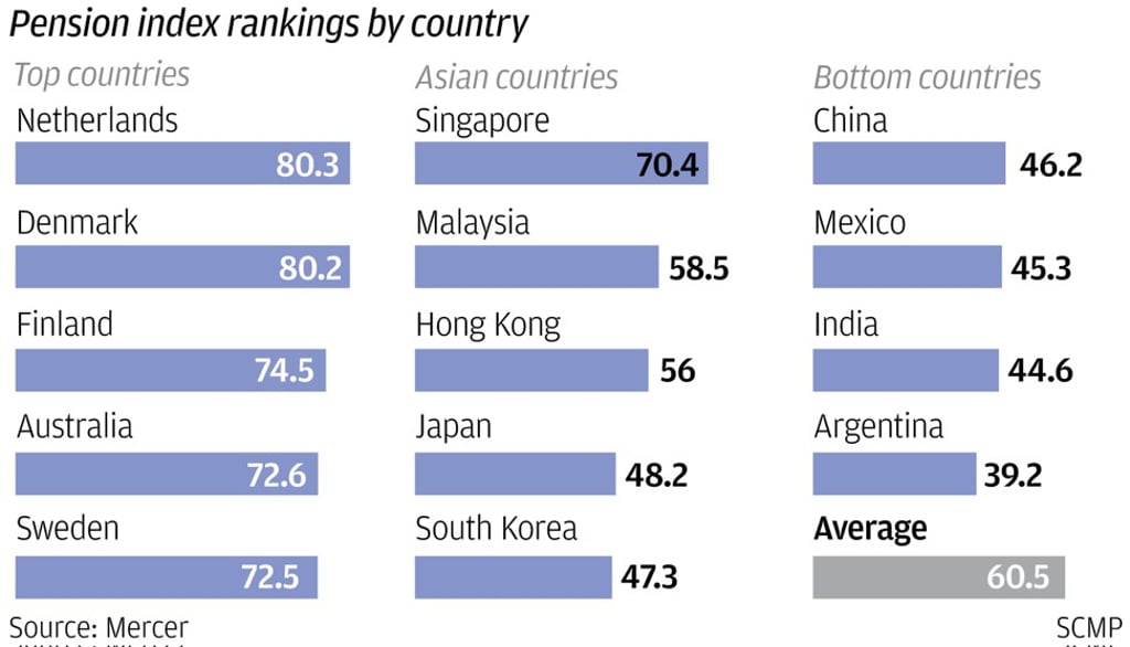 Hong Kong’s Mandatory Provident Fund ranks among the least adequate in the world in terms of seeing to the future needs of pensioners, ranking ahead of only India and Mexico among 34 worldwide markets tracked in a global study by pension consultancy Mercer.