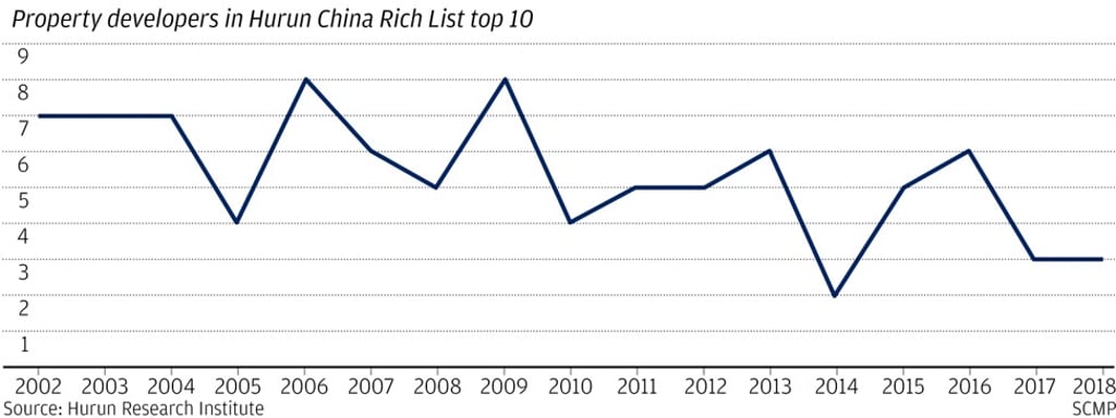 But, as property development has slowed and hi-tech has emerged as the new king, property developers have slipped in dominance on the rich list. Back in 2002, seven out of the top 10 on the Hurun China Rich List were property developers.