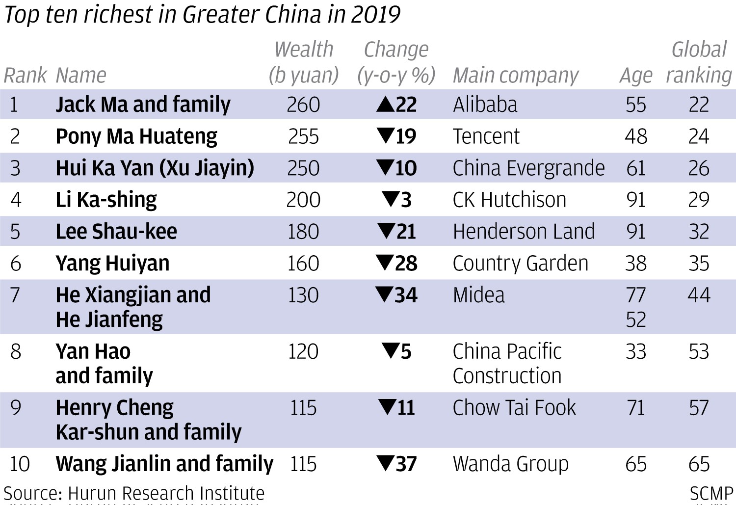 - Only 658 super-rich individuals living in the Greater China region made it to the 2019 list, down from 819 last year