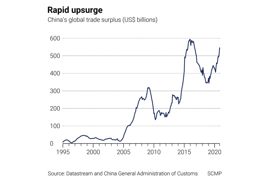 There is light at the end of the tunnel for the Covid-19 pandemic, global economic activity is booming again and China’s exporters are in the thick of the bounce-back in world trade flows. China’s trade surplus hit a record US$75 billion in November as global demand for its exports surged, putting the economy on track for much stronger growth in the months ahead.