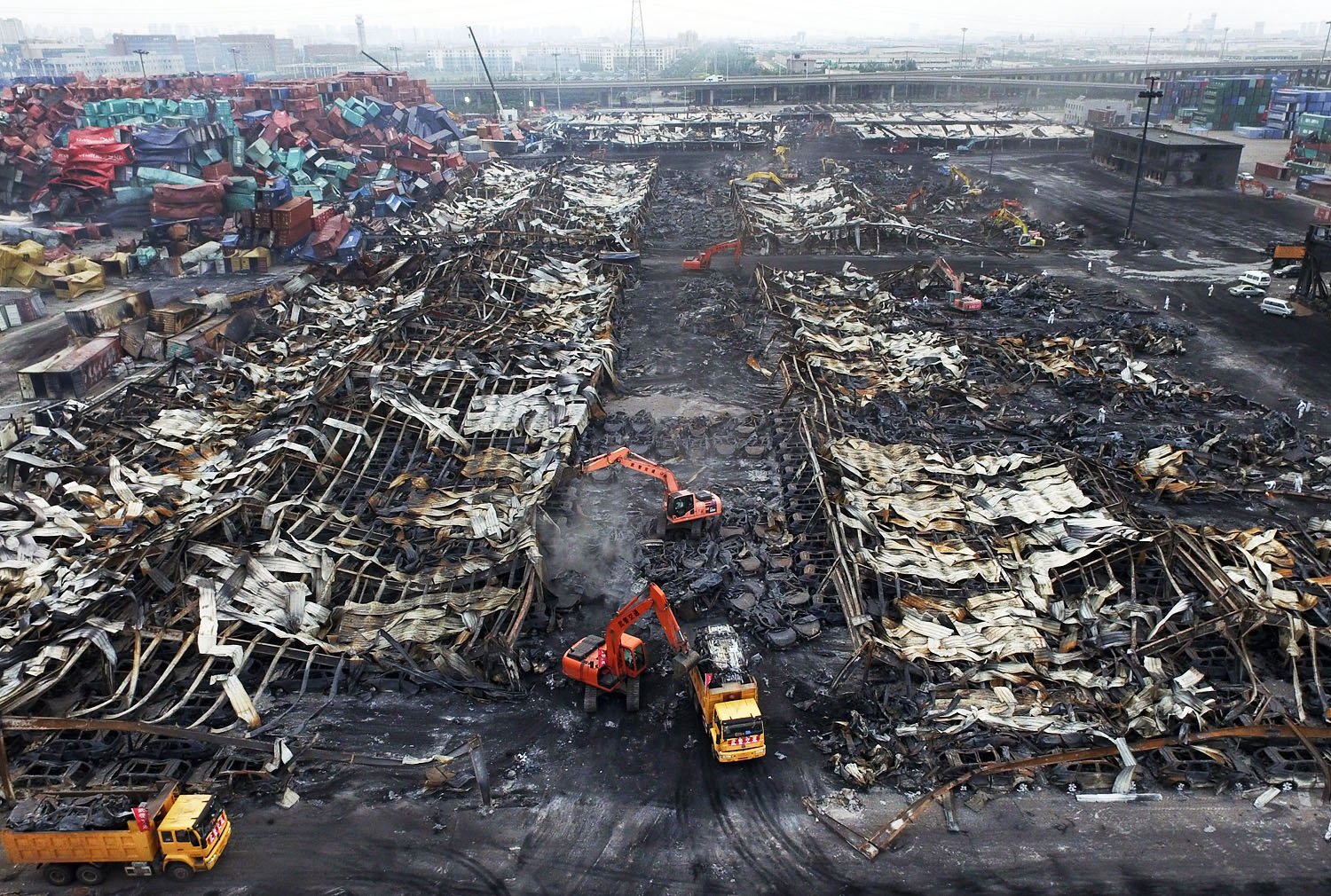 Clean-up work continues at the scene of the blasts.