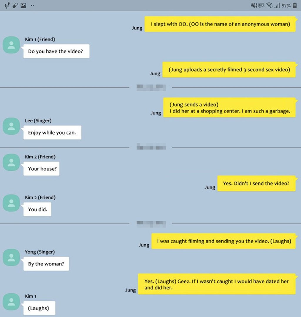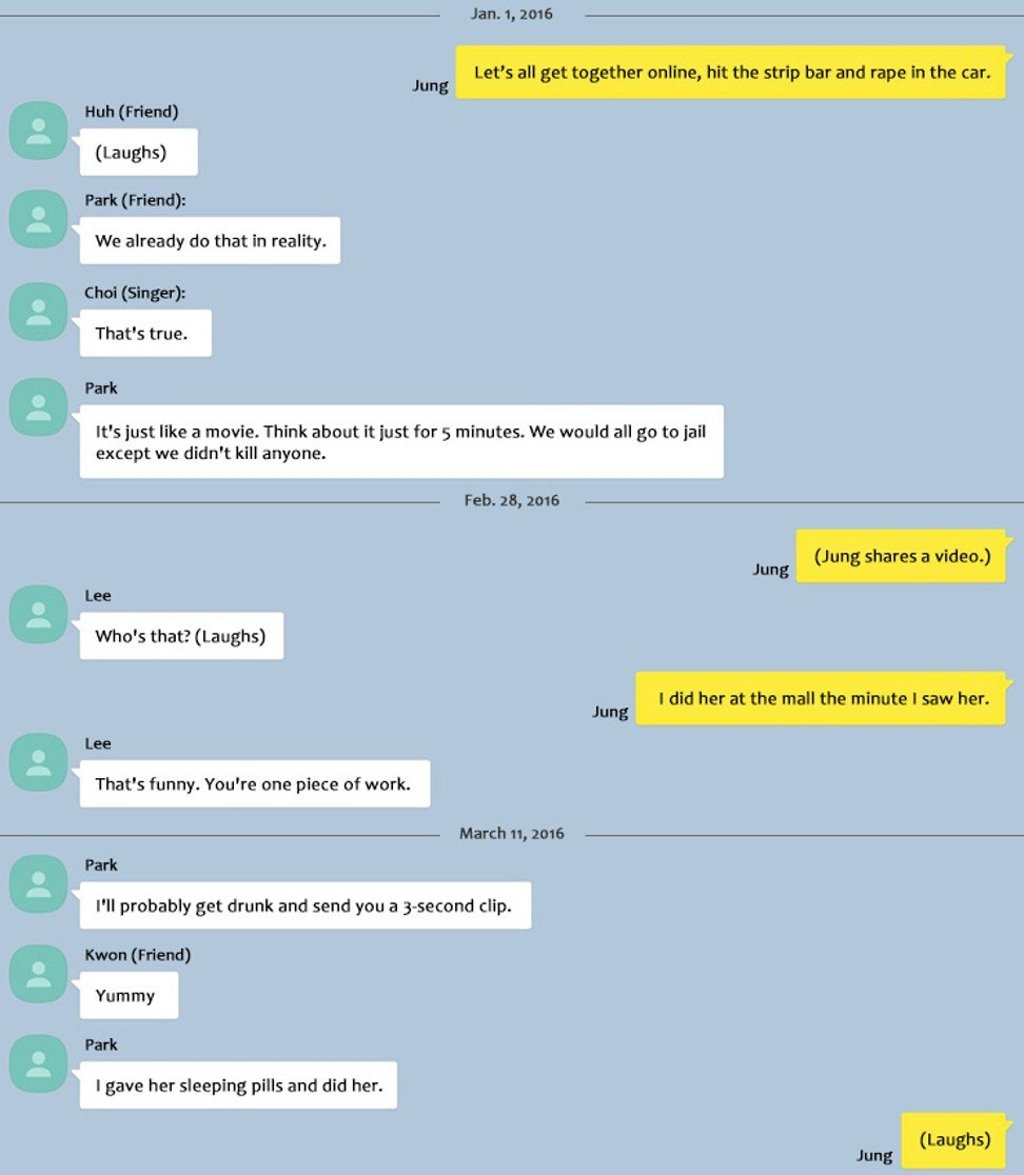- Jung Joon-young’s group chat includes discussions of rape, drugging women and having sex with women who are being filmed without their consent