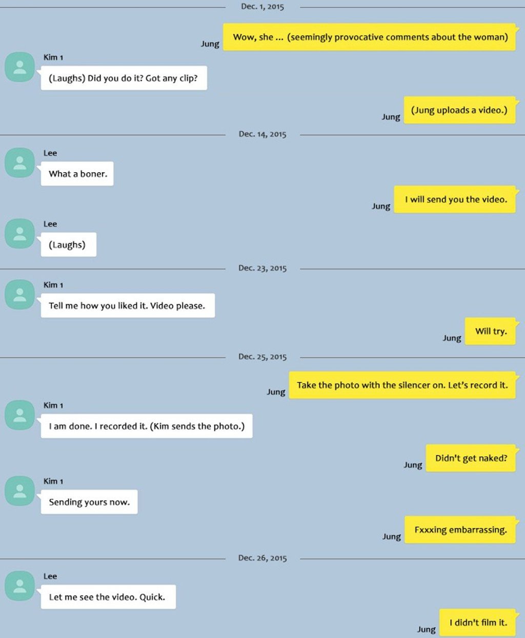 The following is a translated reconstruction of a group chat involving singer and actor Jung Joon-young, who is being investigated for filming and sharing videos showing him having sex with several women.