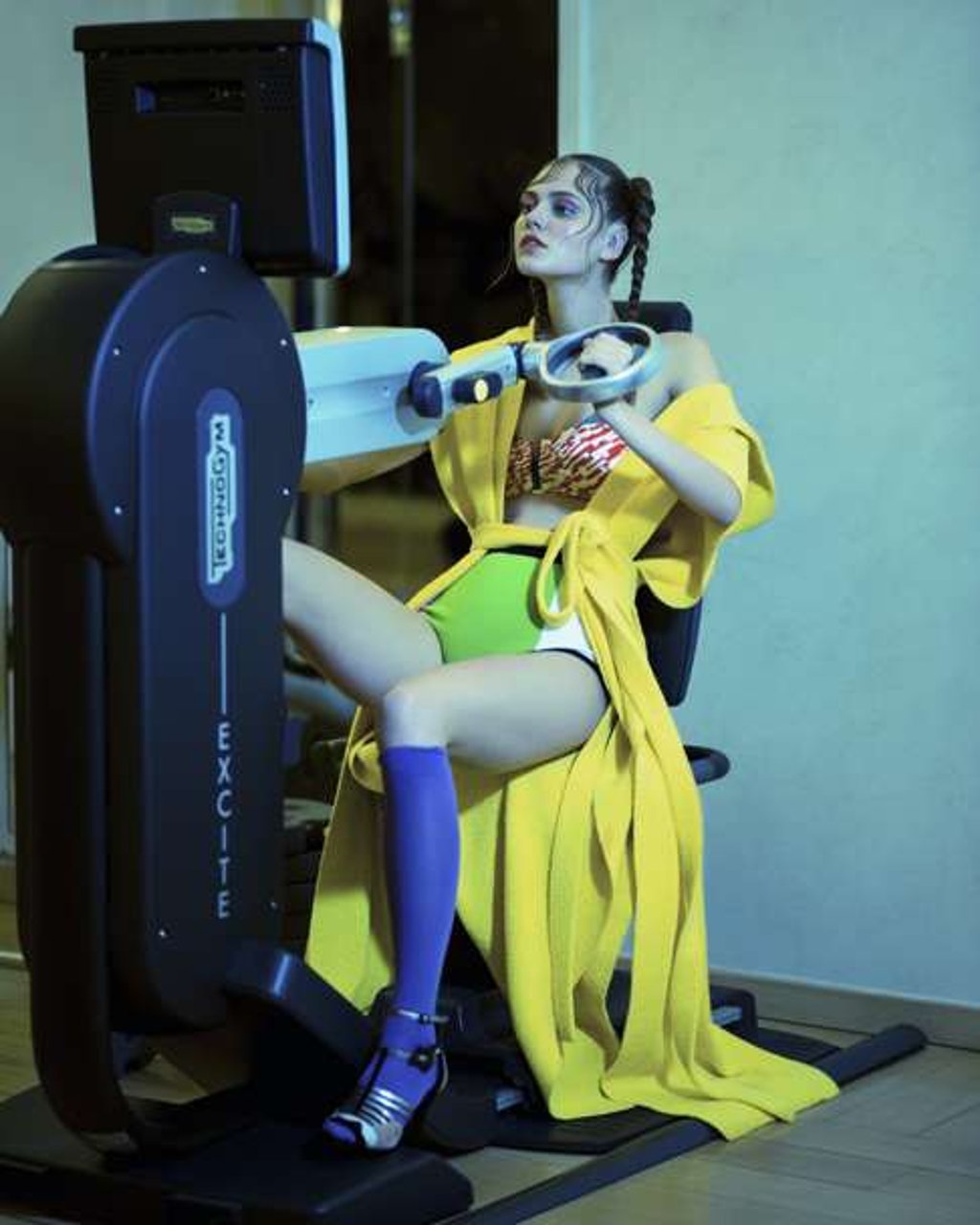 Dress by Lacoste (inquiries: 2831 3991). Printed swimsuit bra (HK$1,700) by Eres from Net-a-Porter. Mesh shorts by Emilio Pucci (inquiries: 2317 1882). Sandals and socks, same as before.