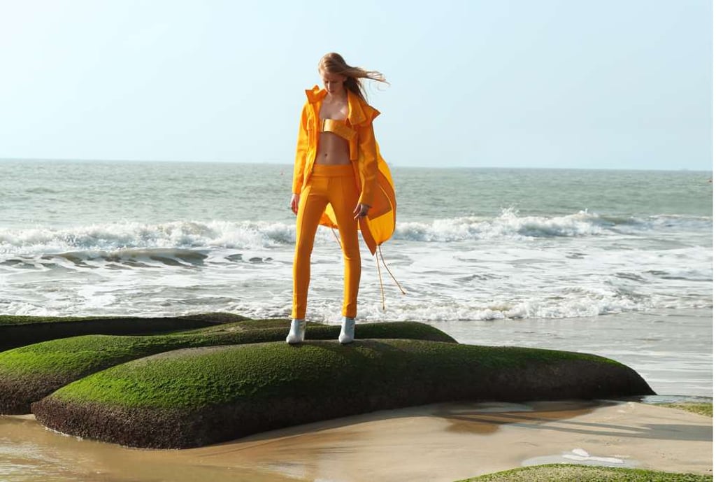 Bra top (HK$5,700), parka (HK$11,500) and trousers (HK$4,600), all by Versus. Ankle boots (HK$6,250) by Stuart Weitzman.