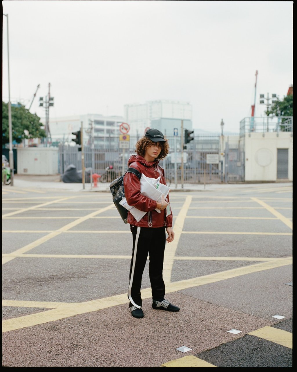 Windbreaker (HK$35,990) by Bally. Trousers by Valentino (inquiries: 2530 2621). Trainers (HK$5,900) by Lanvin. Backpack (HK$6,200) by Emporio Armani. Cap (HK$3,000) by Balenciaga.