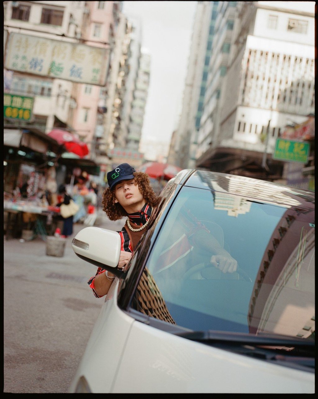 T-shirt (HK$4,300) by Dolce & Gabbana. Black jumper by Louis Vuitton (inquiries: 8100 1182). Jeans (HK$7,800) by Balenciaga. Cap (HK$3,300) by Hermès.