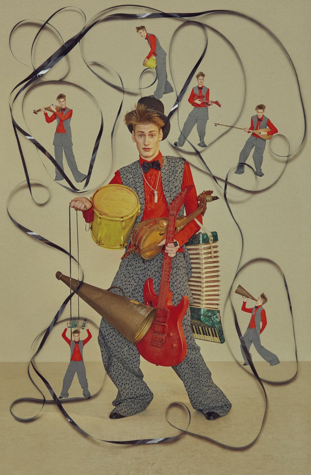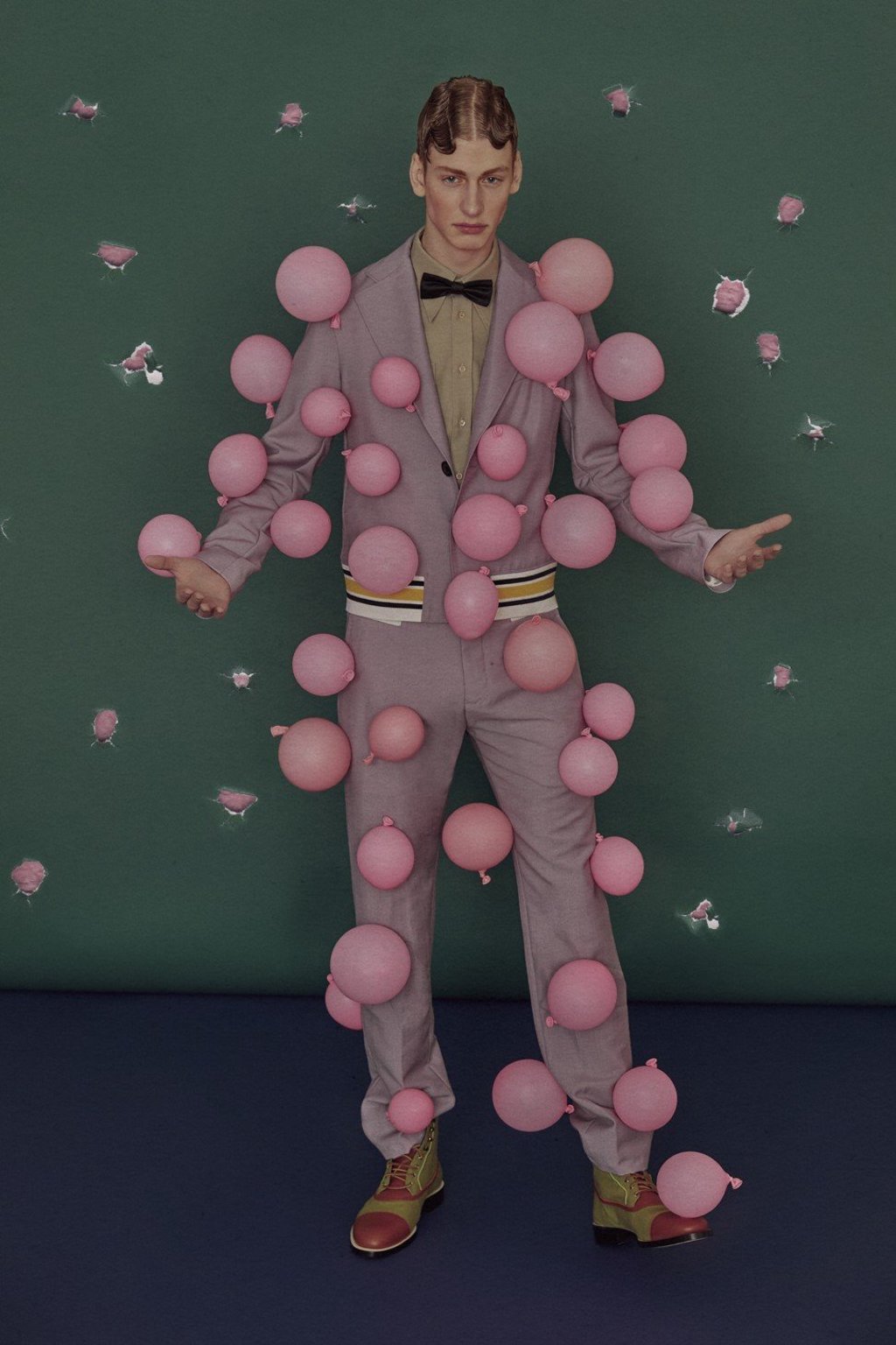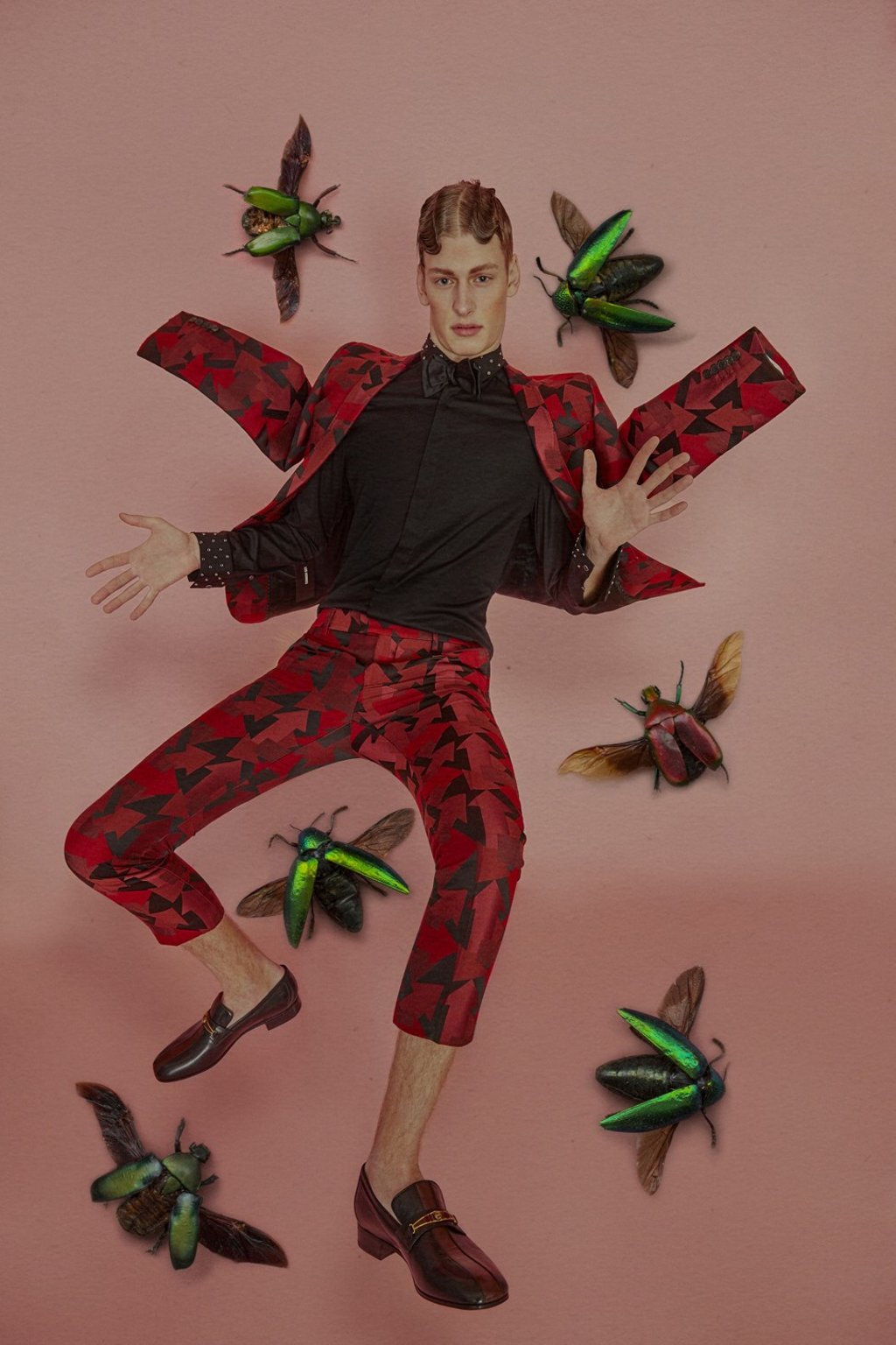 Jacket, trousers and boots, all by Loewe (inquiries: 2522 0996). Shirt by Gucci (inquiries: 2524 4492). Bow-tie by Louis Vuitton.