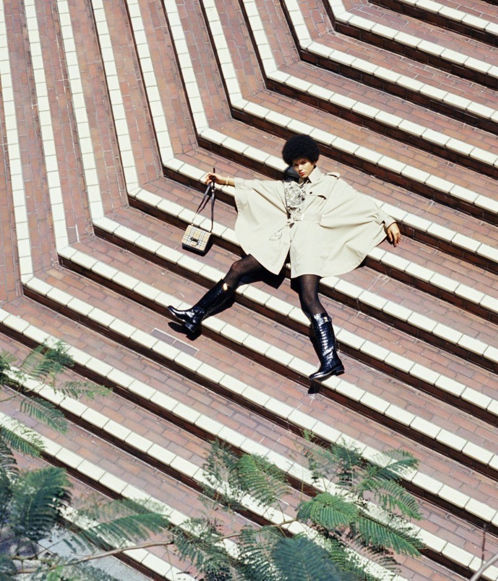 Cape (HK$24,000) by Valentino. Knit tights (HK$9,200) by Dior. Riding boots with removable jewelled strap (HK$7,480) by Max Mara. Bag (HK$13,900) by Burberry. Bracelets (HK$6,200) by Chanel.