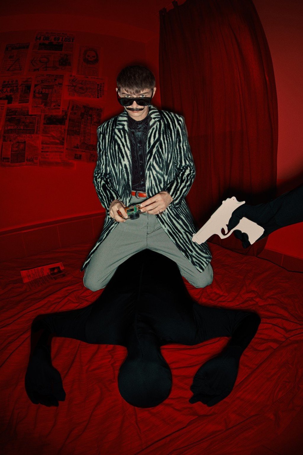 Coat (HK$55,000) and trousers (HK$4,800), both by Emporio Armani. Jumper (HK$7,900), shirt (HK$4,200) and tie (HK$1,500), all by Alexander McQueen. Hat (HK$4,950) by Loewe.