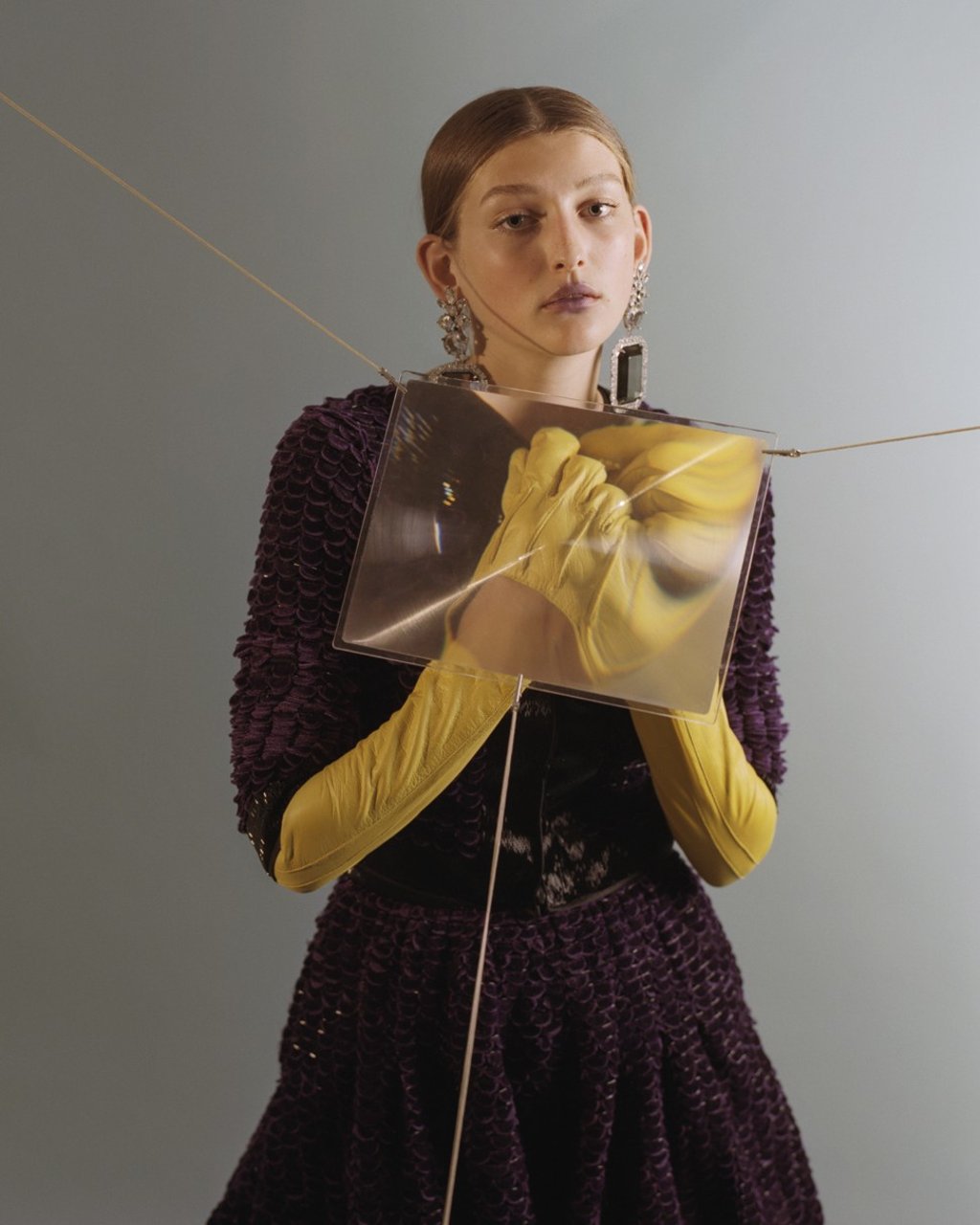 Jacket (HK$7,790) and shoes (HK$7,690) by Kenzo. Dress (HK$4,322) by Ashley Williams from Liger. Ruffle belt by Marc Jacobs (inquiries: 2523 3324). Tights (HK$480) by Wolford. Earrings (HK$3,400) by Mulberry.