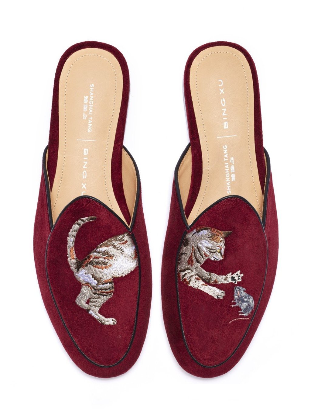 Shanghai Tang has teamed up with Chinese shoemaker Bing Xu for a series of slippers (HK$2,980) embroidered with cute scenes such as this cat and a mouse. Available at Shanghai Tang, Duddell Street, Central.