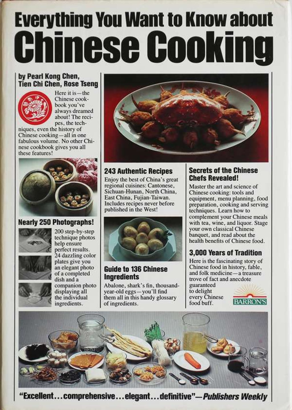 Pearl Kong Chen, who died in 2014, was considered one of the foremost authorities on Cantonese cuisine. In the introduction, the authors write: “The Chinese culture has been in existence for over ten thousand years. Chinese cookery has always been a special enjoyment to the Chinese people and serves to bind them together, keep them healthy and help them overcome calamities, natural or man-made. It is thus understandable that some Chinese may become so proud of their food as to think that Chinese cookery has long [since] reached perfection in total isolation, and is both unchanging and unchangeable. Serious scholarship disputes this extremist view.