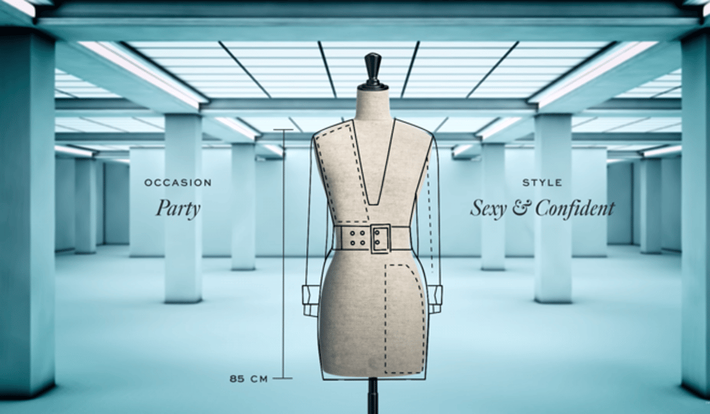 Once you pick the occasion, you’ll be asked to select a style. Choosing a “sexy & confident” party dress created a style with long sleeves, a plunging neckline, and a thick belt to cinch the waist.