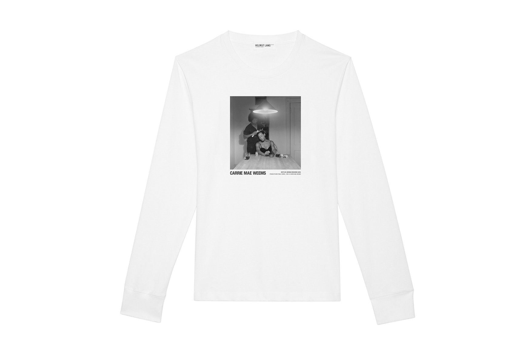 Using pieces from Weems’ Kitchen Table series, Helmut Lang has produced a new line of T-shirts and posters – the Helmut Lang’s Artist Series: Carrie Mae Weems collection.
