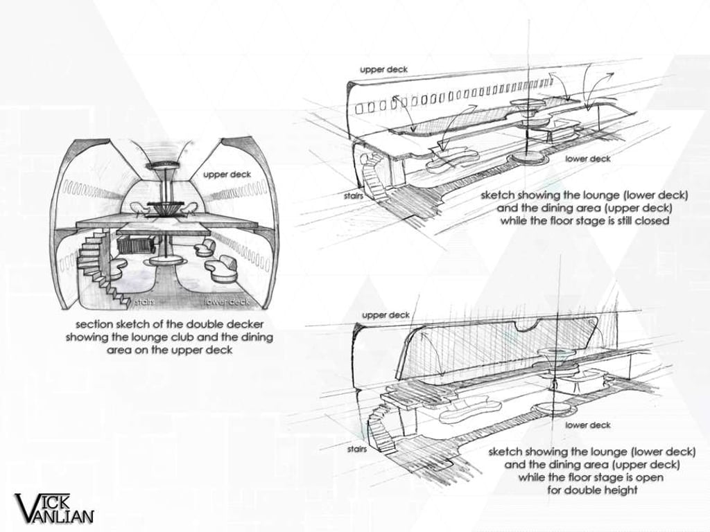 Beirut-based designer Vick Vanlian turns a double-deck private jet into a world of entertainment complete with hi-tech nightclub