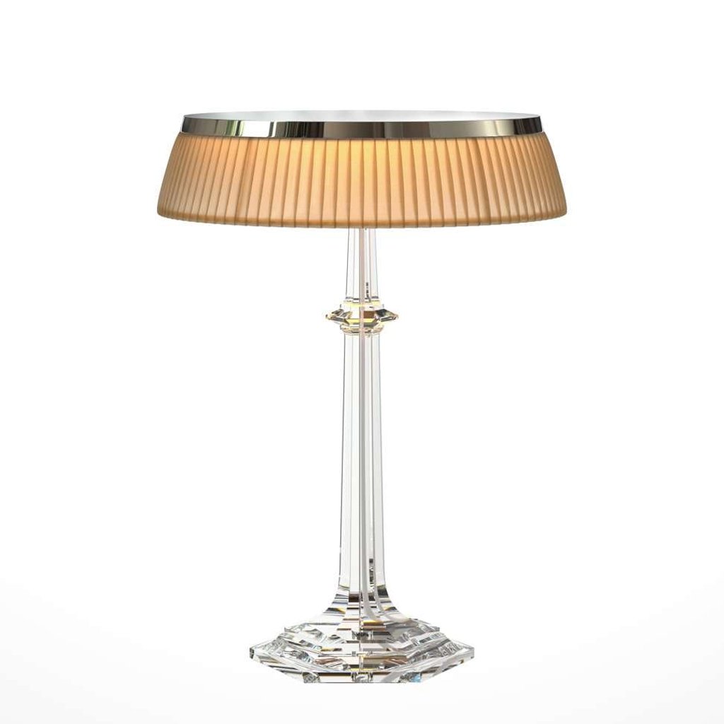 The warm light behind the pleated lampshade comes from a unique LED Edge Lighting technology developed by Flos. Crowned with a chrome plate, the design marks the exquisite craftsmanship and aesthetics of the Baccarat, Flos and Starck.