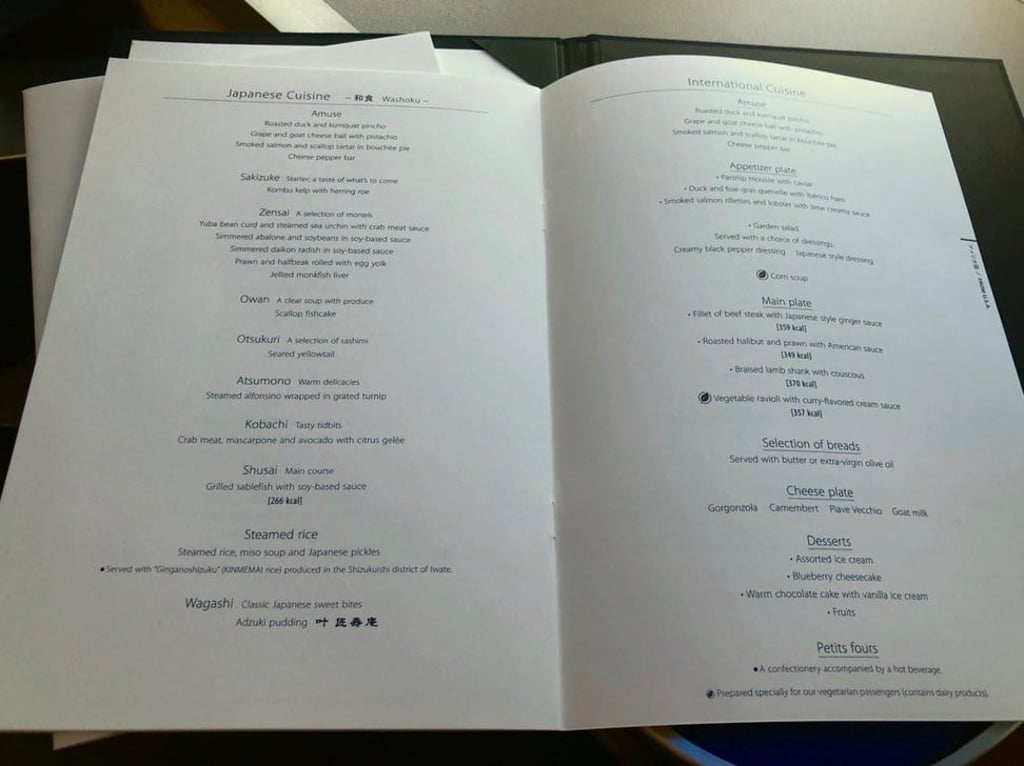 As we snacked on the amuse–bouche plate, flight attendants came by to take our lunch orders. There was a Japanese cuisine option, and an “international” one. I went with the Japanese – I mean, how could you not?