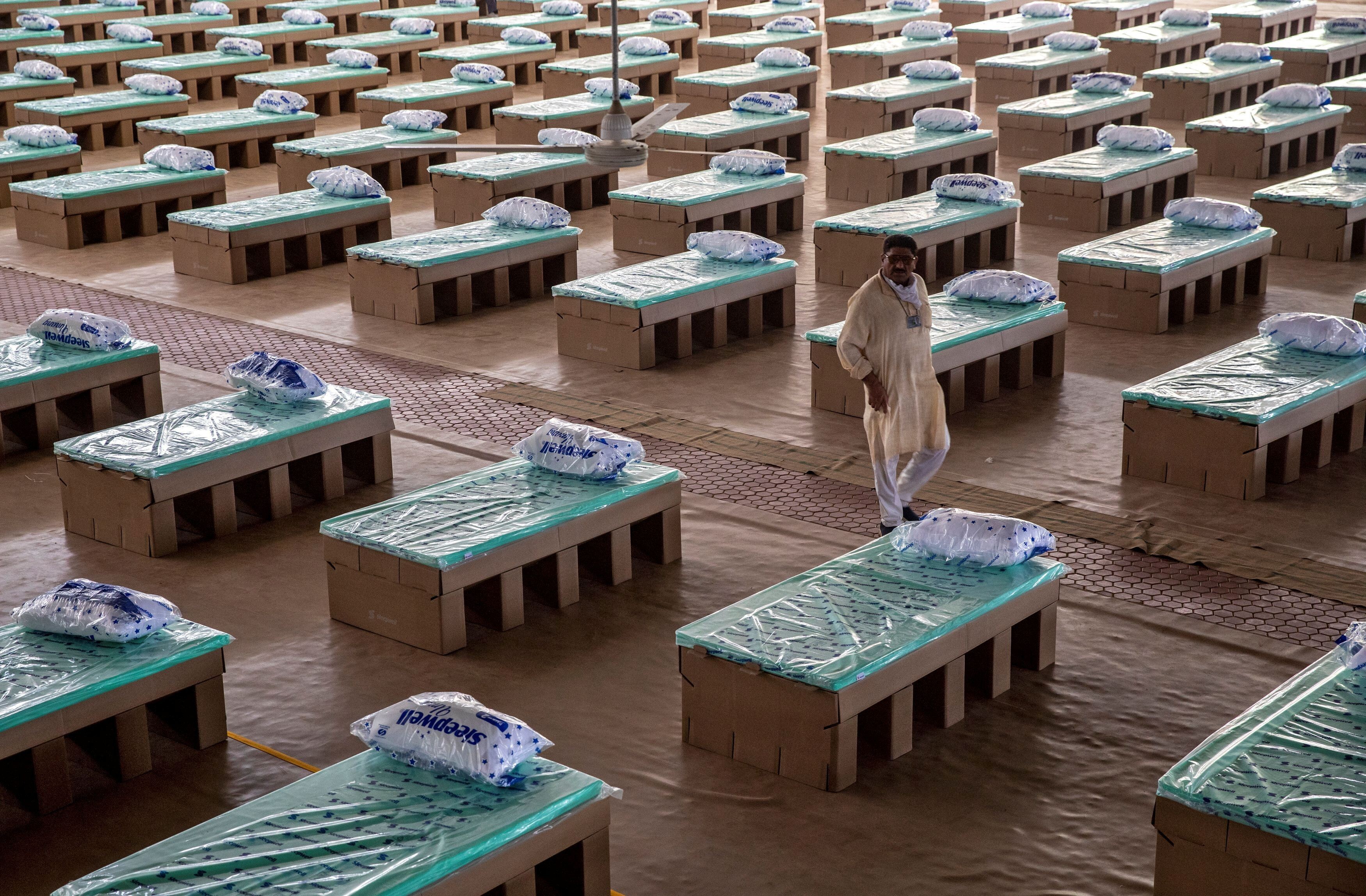 Coronavirus: India uses cardboard beds as hospitals run out of space