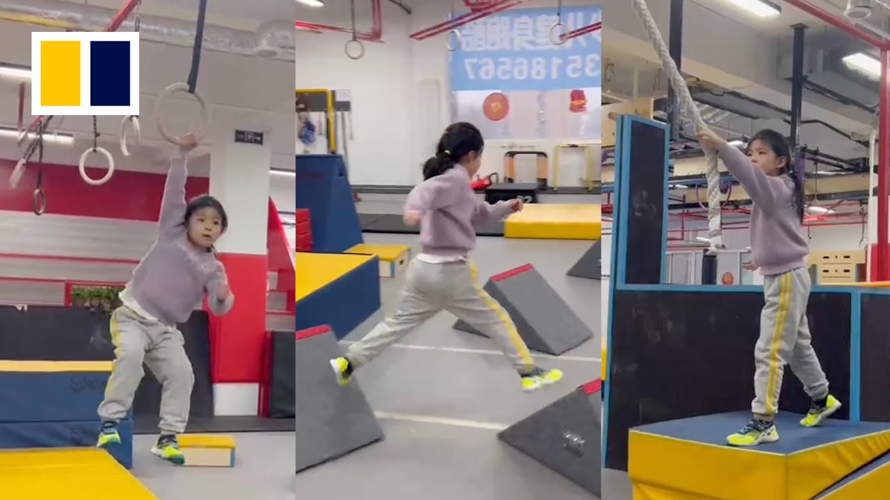 A seven-year-old girl in central China completed what her coach described as a “ninja challenge” in just three minutes.