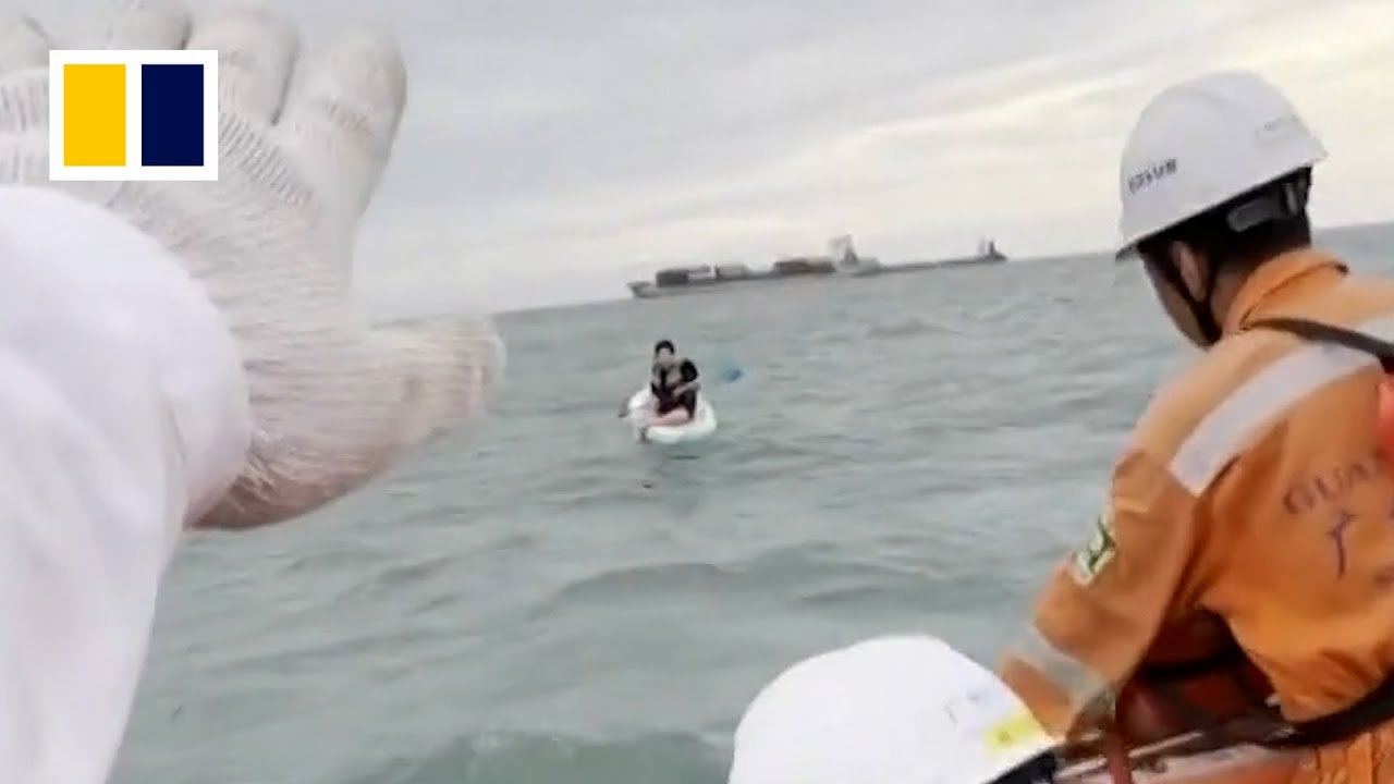 Video | Chinese boy rescued after drifting on paddleboard amid typhoon