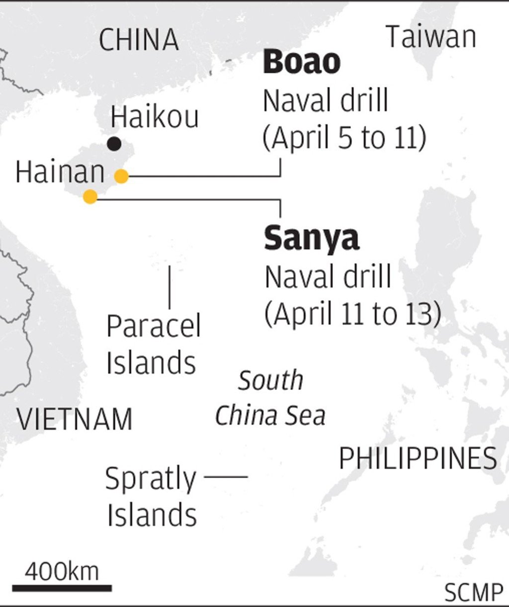 It overlapped with an unprecedented week-long series of live-fire drills involving the aircraft carrier Liaoning to the east of the island, near the venue for the Boao Forum for Asia.