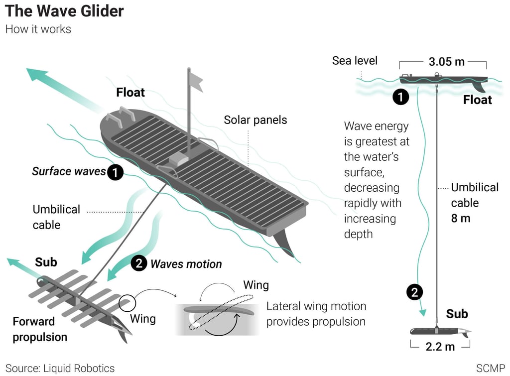 It did not give further details of the drone ship, but mainland military watchers posted on social media that the images looked similar to the Wave Glider – an autonomous boat that is wave- and solar-powered, built by US company Liquid Robotics, a Boeing subsidiary.