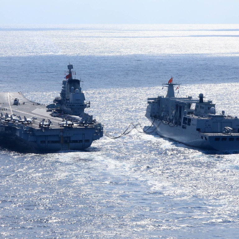 - The Liaoning escorted on ‘routine mission’ by seven warships, including the PLA Navy’s most powerful destroyer