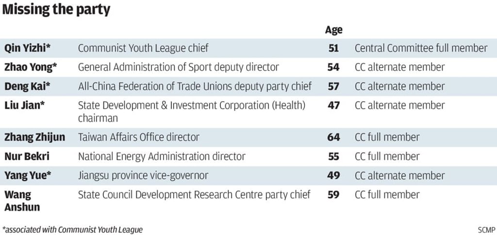 The omissions, including several top cadres from the Communist Youth League, underscored the shift of power and the tightened party discipline under President Xi Jinping, analysts said. Xi is also the party’s general secretary.
