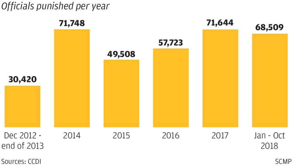 That means more than 2 per cent of cadres – there were 12.5 million of them directly working for the party and the government in 2016, according to the statistics bureau – have faced disciplinary action as a result of the campaign.