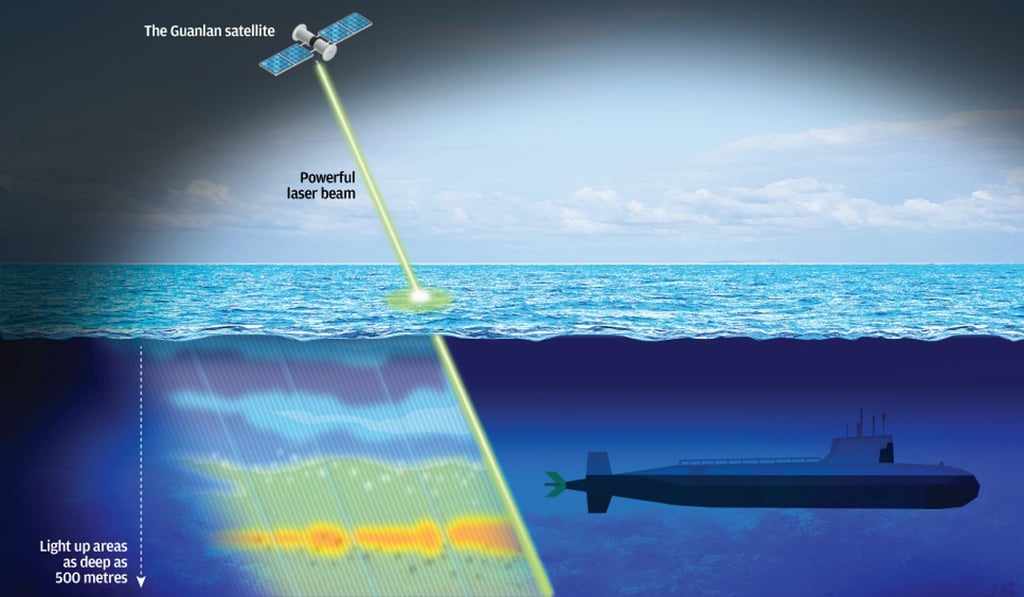 China is developing a satellite with a powerful laser for anti-submarine warfare that researchers hope will be able to pinpoint a target as far as 500 metres below the surface.