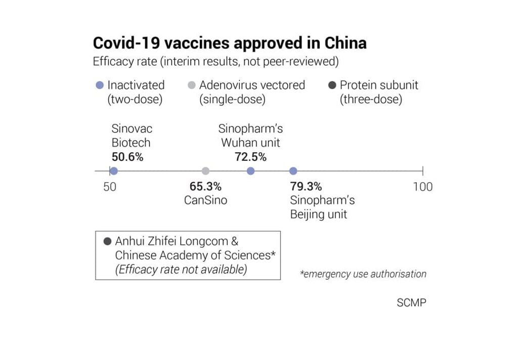 China’s regulatory authority, the National Medical Products Administration, granted similar emergency use approvals (EUAs) based on phase 1 and 2 trial data to three inactivated vaccines in July last year. A fourth vaccine was approved by the military’s drug regulatory authority in China.