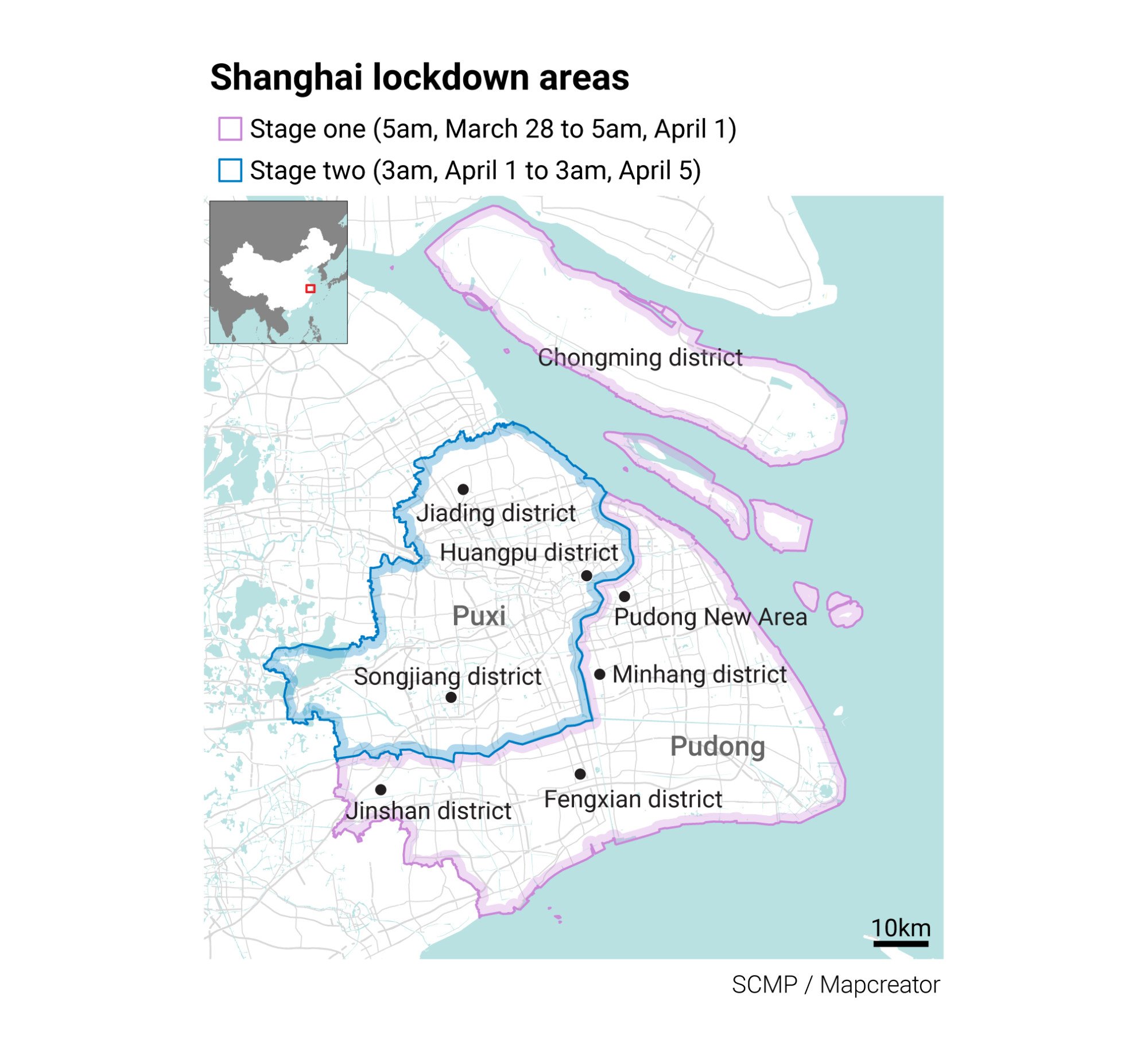 Shanghai residents expected a swift end to the lockdown 10 days ago for Pudong, east and south of the Huangpu River, under the government’s original plan for a staged containment. Communities on the river’s west bank were due to reopen a week ago.
