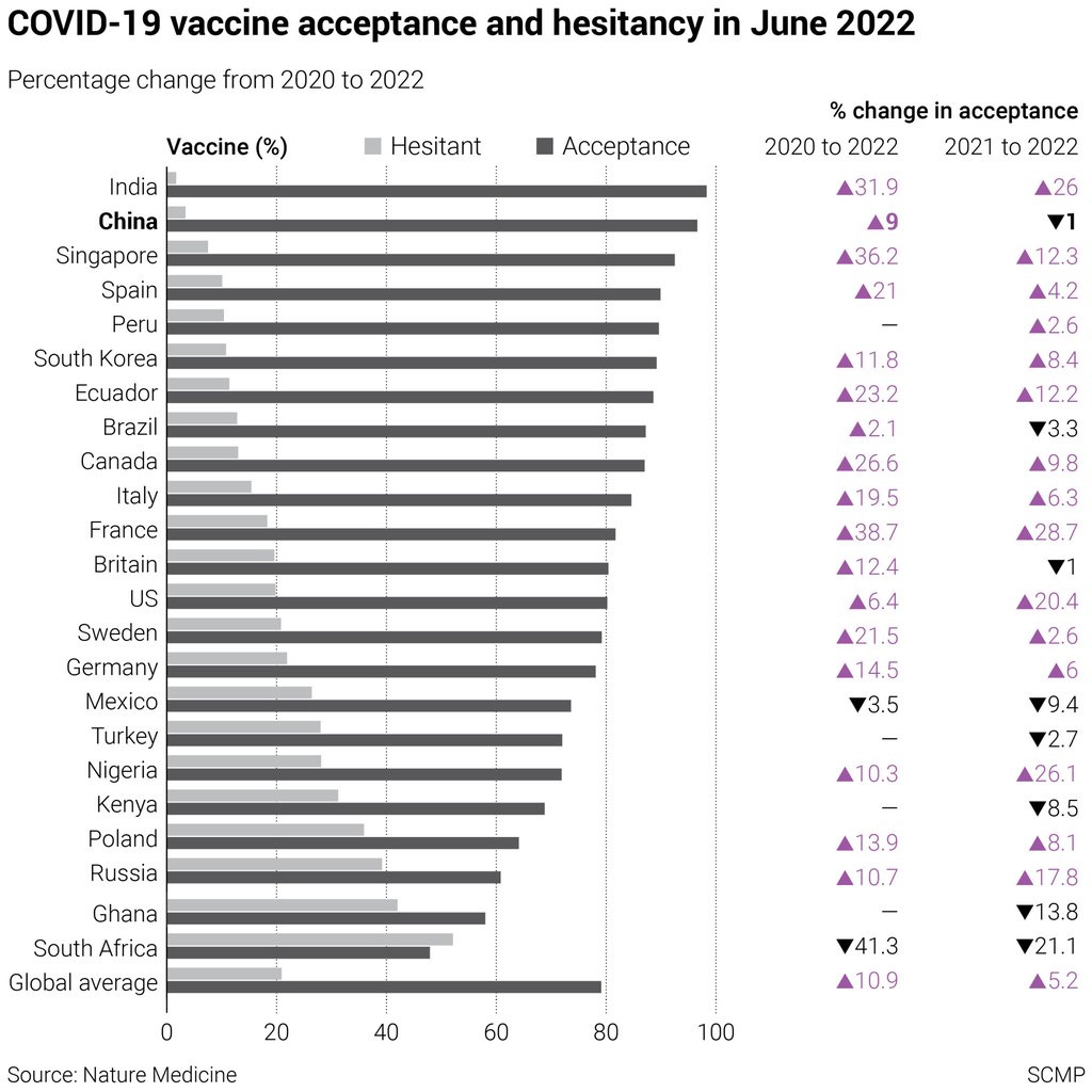 This is the third year of the study and the results, published in Nature Medicine on Monday, showed about 80 per cent of people worldwide are willing to accept vaccination, a rise of about five percentage points from a year ago.