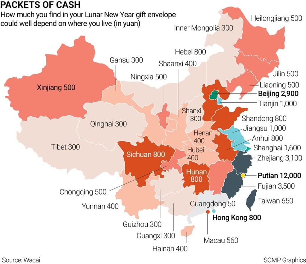 Want a big hongbao this Lunar New Year? Map shows China’s ‘most and least generous’ provinces