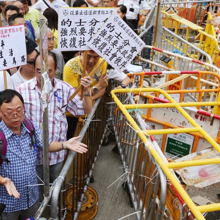 In Mong Kok, two of five lanes at the junction of Argyle and Shanghai streets near Langham Place are open to traffic after barriers were removed by unidentified men yesterday afternoon. Vehicles can now turn left from Portland Street into Argyle Street.