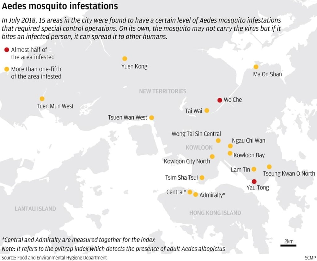 Adult Aedes albopictus, which carry the disease, were particularly widespread in Yau Tong, Wo Che and Tseung Kwan O North