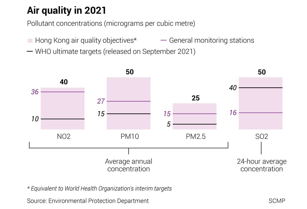 Hong Kong’s air quality on the mend, but most pollutant concentration levels ‘still fall short of WHO goals’